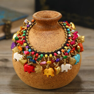 Take the blue – colored one in the picture, for example. Those turquoise stones were carefully selected by them from nearby markets to ensure that each one had a warm and gentle color. The small gold – colored metal ornaments like elephants and hearts were also hand – polished. Although the lines were not as regular as those produced by machines, they had a unique simplicity and warmth.