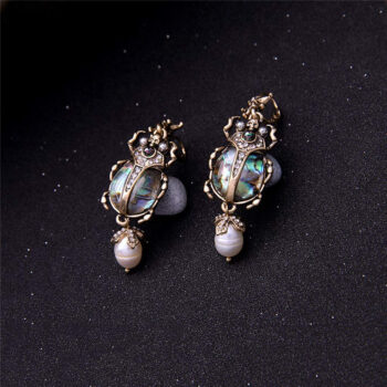 Shell Beetle Diamond Studded Pearl Earrings