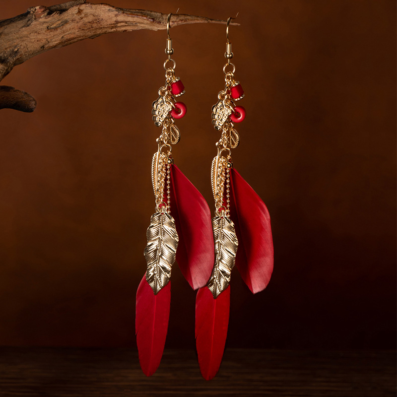 Bohemian Leaf Feather Earrings