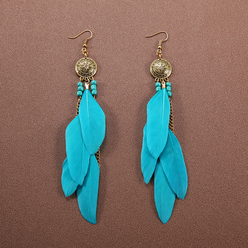 Long Blue Feather Tassel Earrings