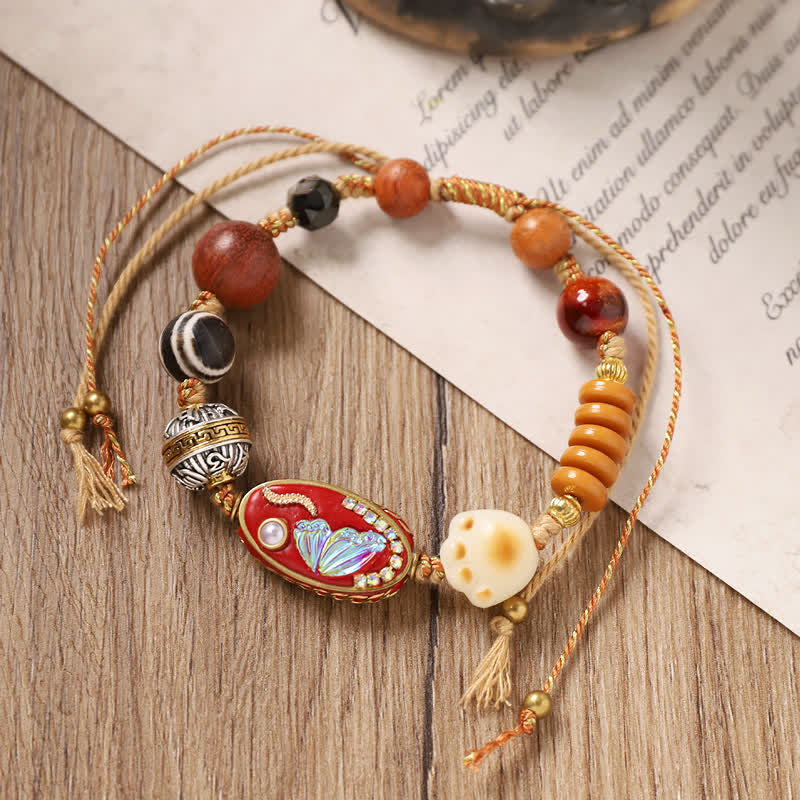 Our Retro Hand-woven Tibetan Style Tianzhu Bracelet is a masterpiece that bridges the gap between ancient traditions and modern fashion. Picture a skilled artisan in the heart of Tibet, with deft hands weaving together threads of history and culture. Each strand of the hand-woven part is a testament to their craftsmanship, carefully intertwined to create a durable and comfortable base.