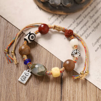 The design of this bracelet is a harmonious blend of Tibetan ethnic style and new Chinese aesthetics. It’s not just an accessory but a statement of individuality. The combination of the retro hand-woven rope and the distinctive Tianzhu beads creates a look that is both eye-catching and meaningful. Whether you’re a man or a woman, this unisex bracelet is designed to suit your style, allowing you to showcase your unique taste and appreciation for cultural heritage. Wear it to a cultural event, a casual gathering, or even in your daily life, and it will surely draw admiring glances and start conversations. It’s a piece of art that you can carry with you, a connection to the rich and diverse cultures of China.